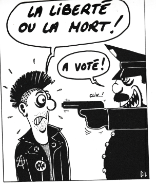 Bien sûr, la lutte contre l’extrême-droite est plus que jamais d’actualité. Mais on peut facilement conclure de ce qui précède qu’elle ne passe ni par les élections, ni par un front anti-fasciste. Le « vote républicain » des dernières élections est une véritable caricature : il a permis de faire élire des politiciens dont le premier souci a été ensuite de s’allier avec le RN. L’anti-fascisme moral a fait la preuve de son inefficacité depuis qu’il existe. Pour toutes ces questions, nous renvoyons au numéro précédent de Courant Alternatif.