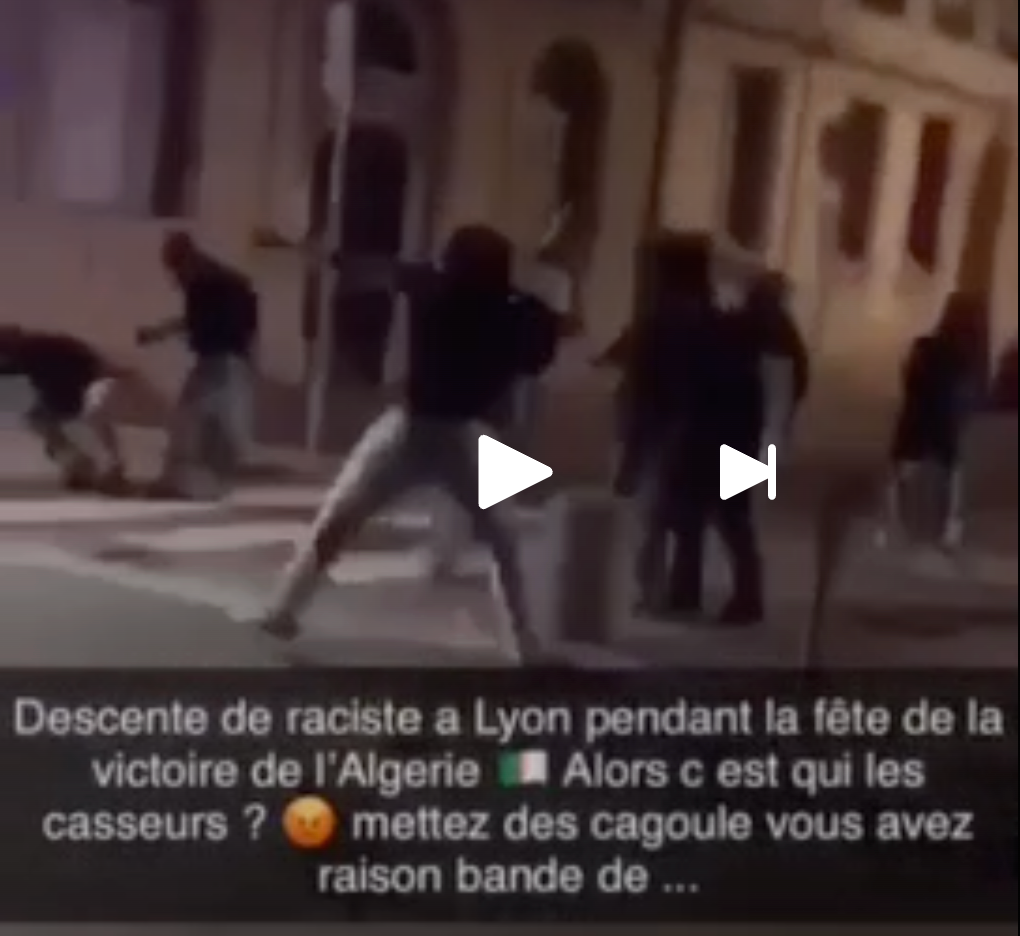 En 2019, alors que des supporters algériens célèbrent la victoire de leur équipe en coupe d’Afrique des nations, des néo-fascistes se livrent à une véritable « chasse aux Arabes », agressent et terrorisent des automobilistes, certains avec leurs enfants à l’arrière du véhicule. Quatre ans plus tard, sept militants d’extrême-droite seront condamnés par la justice à des peines de prison ferme, et avec sursis.