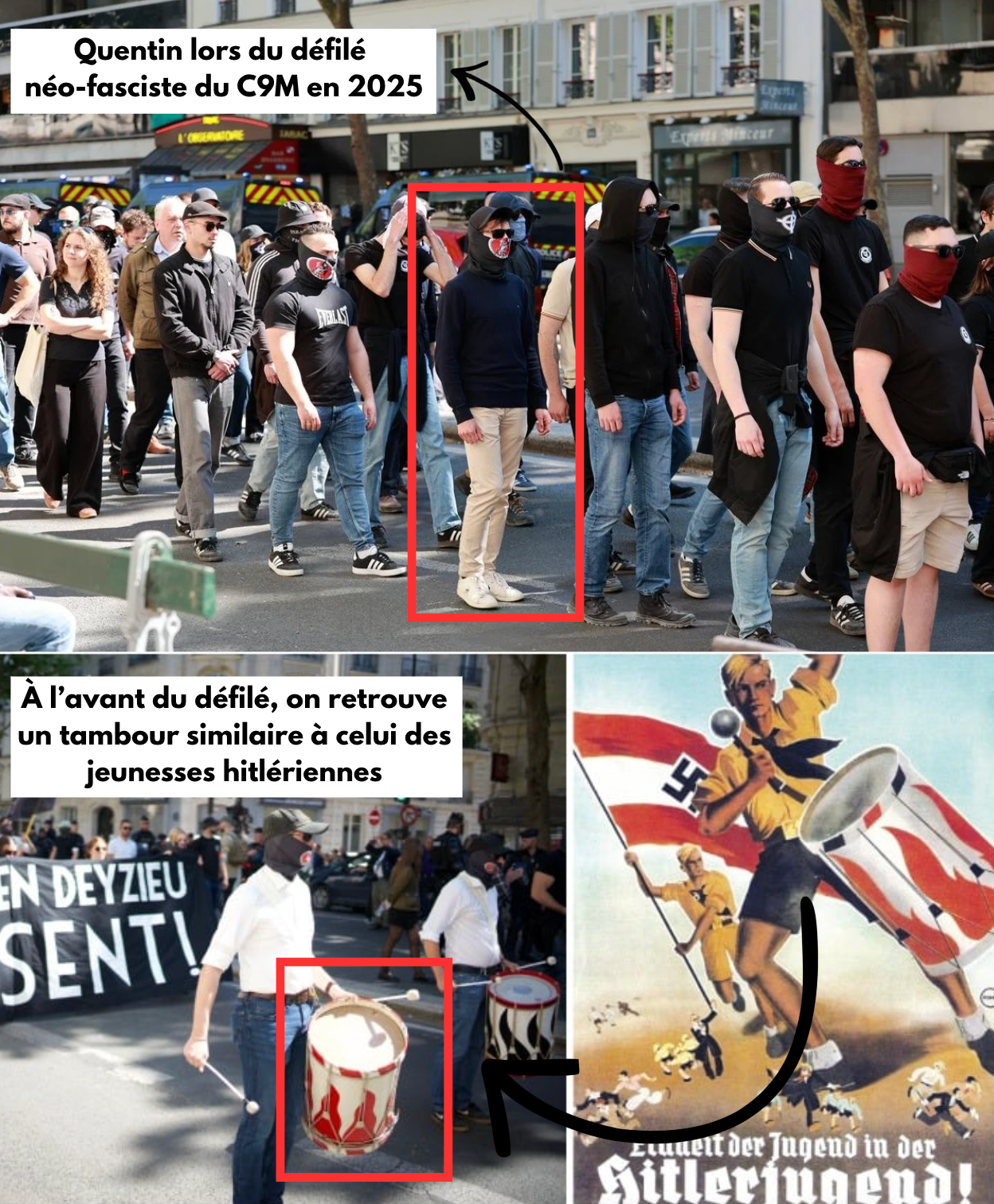 La majorité des organisations nationalistes révolutionnaires sont aujourd’hui héritières du Bastion Social, dont Rémy Chemain, colocataire de Quentin avant son décès, est un ancien membre. Cette organisation, fondée en 2017 par des militants du GUD, et dissoute en 2019, est connue à Lyon pour avoir commis de nombreuses agressions. Depuis la disparition du groupe, des organisations ont essaimé un peu partout en France, notamment dans la région lyonnaise. Les militants de ces différents groupuscules se retrouvent, une fois par an, lors de la marche du C9M, un comité fondé pour rendre hommage à un militant néo-fasciste mort en 1994. Des images, dénichées par le journaliste de Mediapart Donatien Huet, et des témoignages de proches de Quentin au Figaro, attestent de sa présence lors de cet événement, aux références néo-nazies à peine voilées, à l’image des tambours utilisés par les militants, décorés à la manière de ceux des jeunesses hitlériennes.
