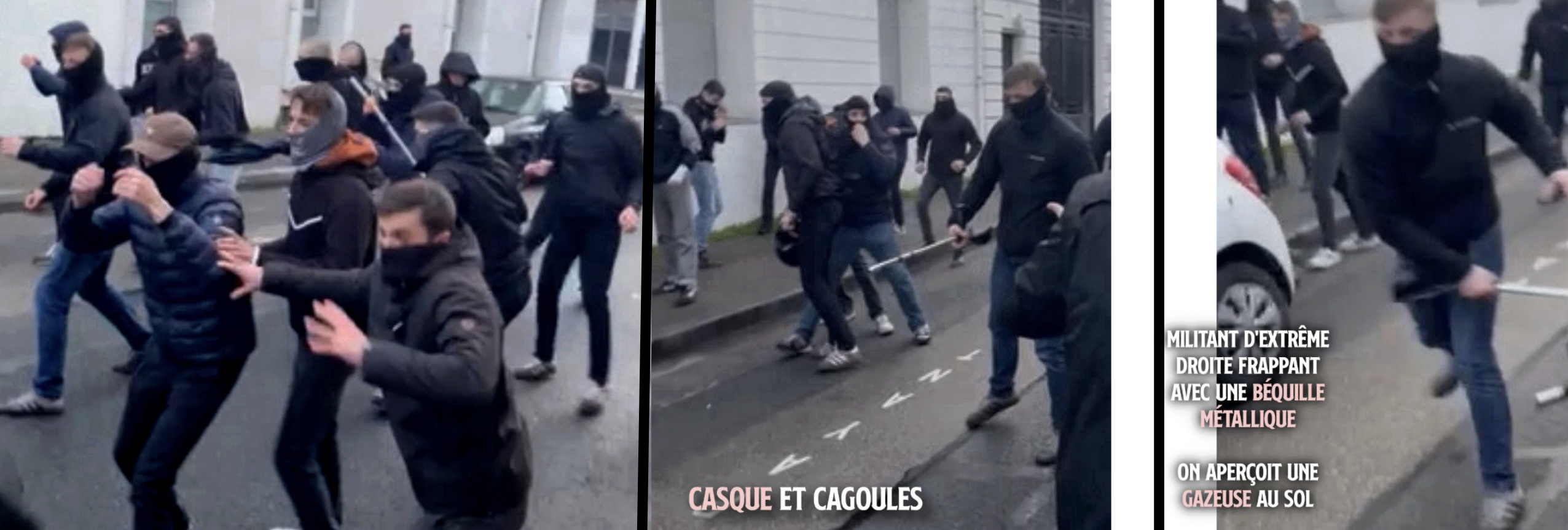 Les nombreux éléments apparus au cours du week-end, et depuis le début de la semaine, permettent d’éclairer le déroulement des faits. Ils contredisent la thèse du guet-apens tendu par des antifas, et décrivent au contraire un groupe d’une quinzaine de militants d’extrême-droite, cagoulés et armés, venus pour en découdre. Le profil de Quentin, dont on connaît désormais une bonne partie du CV militant, montre un jeune homme actif au sein des franges les plus radicales de l’extrême droite: du royalisme au néo-fascisme, en passant par l’intégrisme religieux.